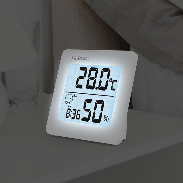 • 휴비딕디지탈시계온습도계 백라이트HT-1화이트 N